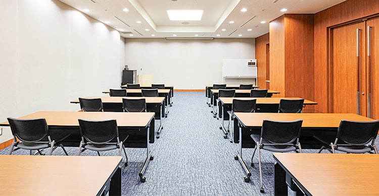 R階への移動は国際ホール奥の非常階段にてお願いいたします。