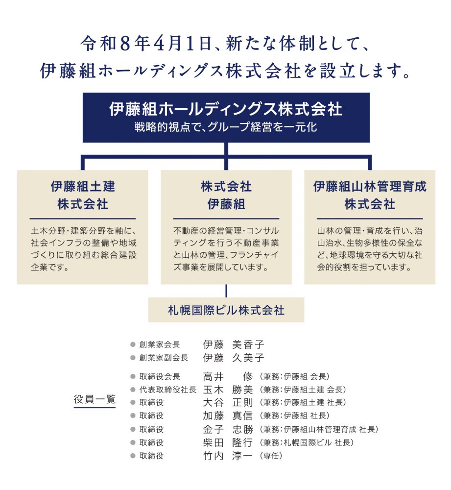 新たな体制として、伊藤組ホールディングス株式会社を設立します